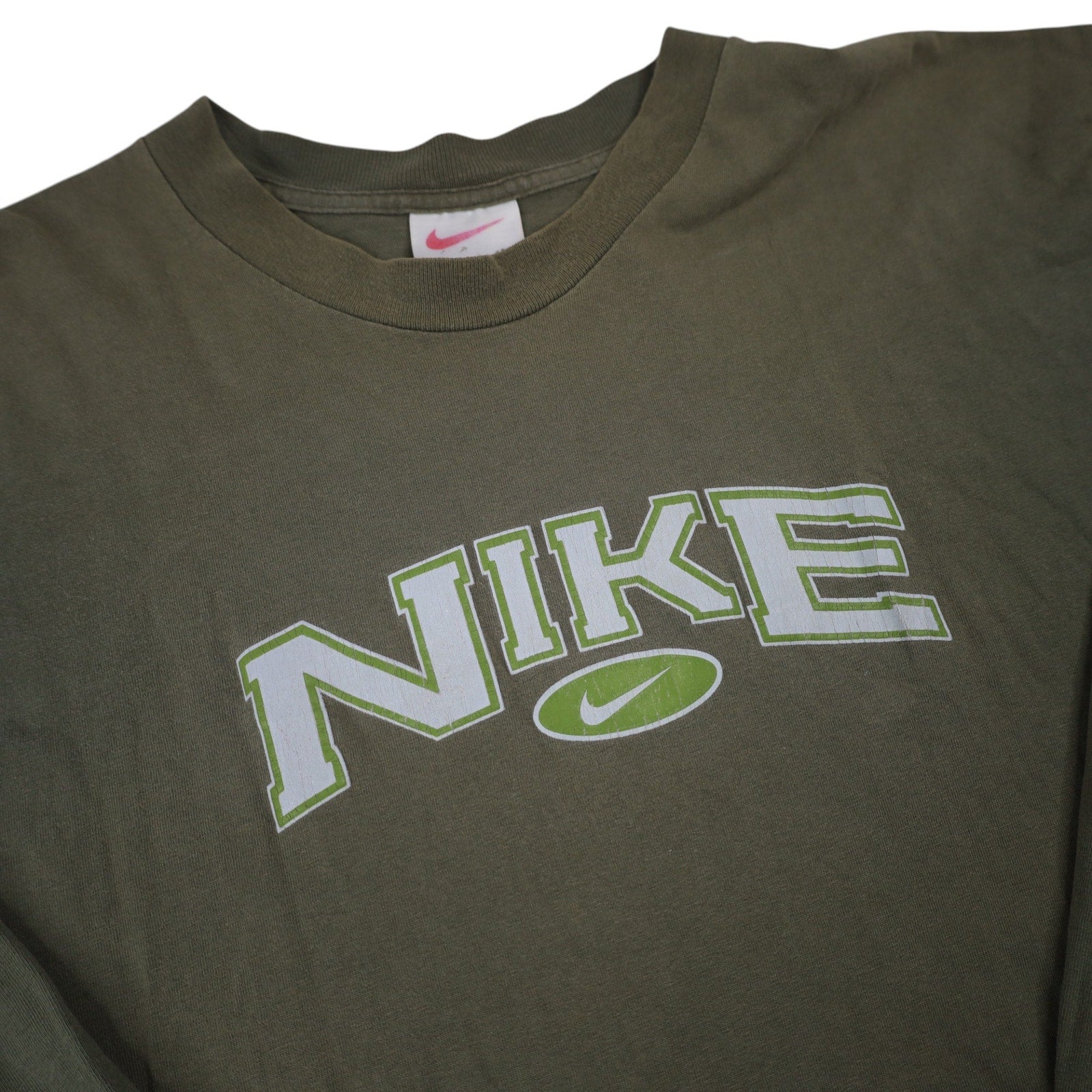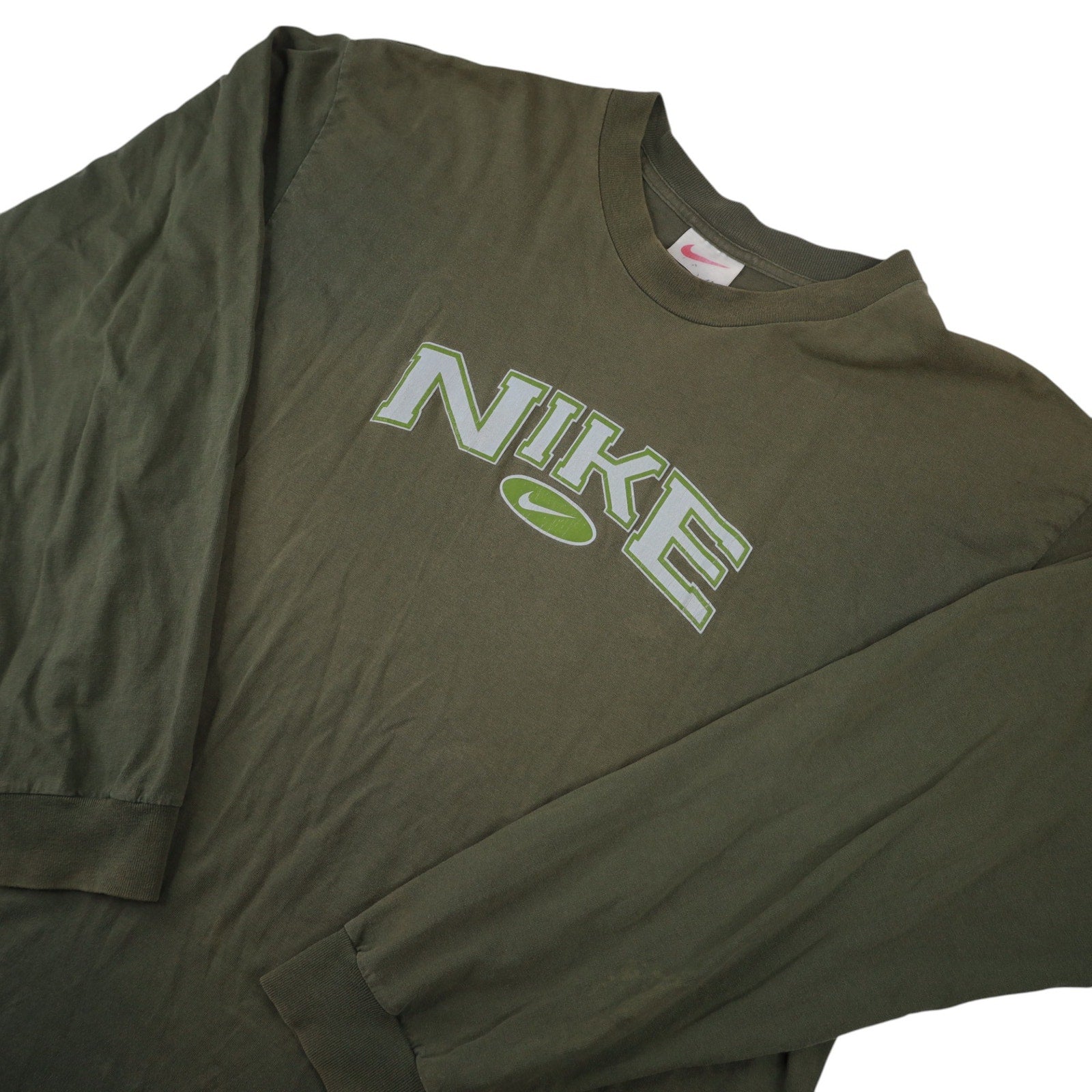 Vintage 90s Nike Spellout Mini Swoosh Long Sleeve Shirt. Has a perfect fade to it. Overall in good condition, has some signs of use.