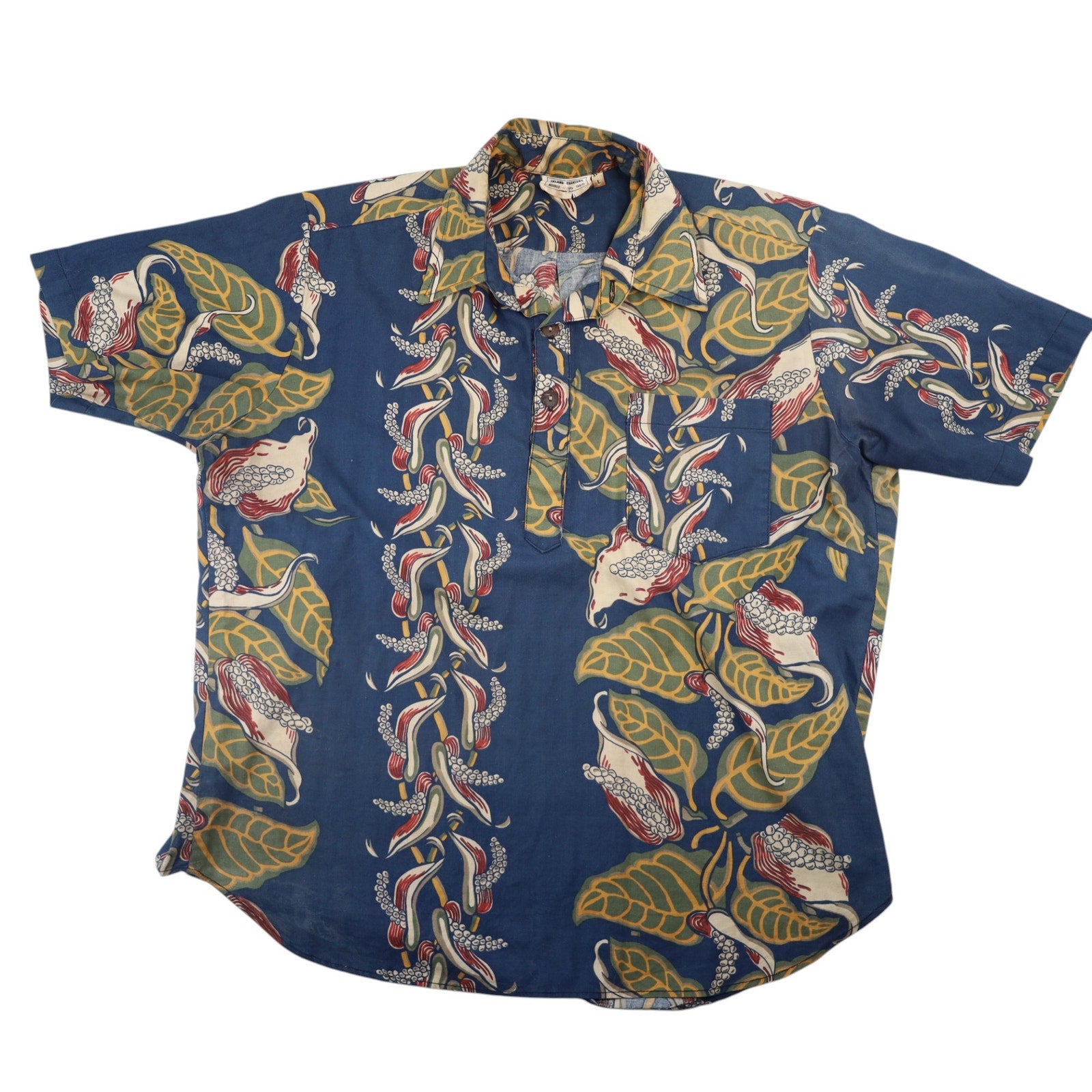 True Vintage Island Fashion Tahiti Tropical Hawaiian Shirt. Features half button construction. In excellent condition,
