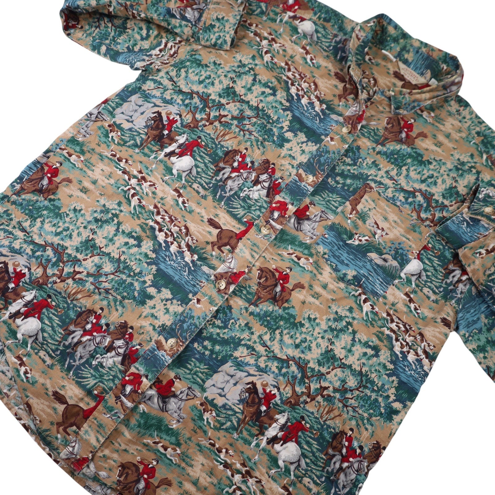 Vintage Gotcha Covered Classic Fox Hunting Pattern Button Up Shirt. USA made, has the quality to match. In excellent condition, no notable imperfections.