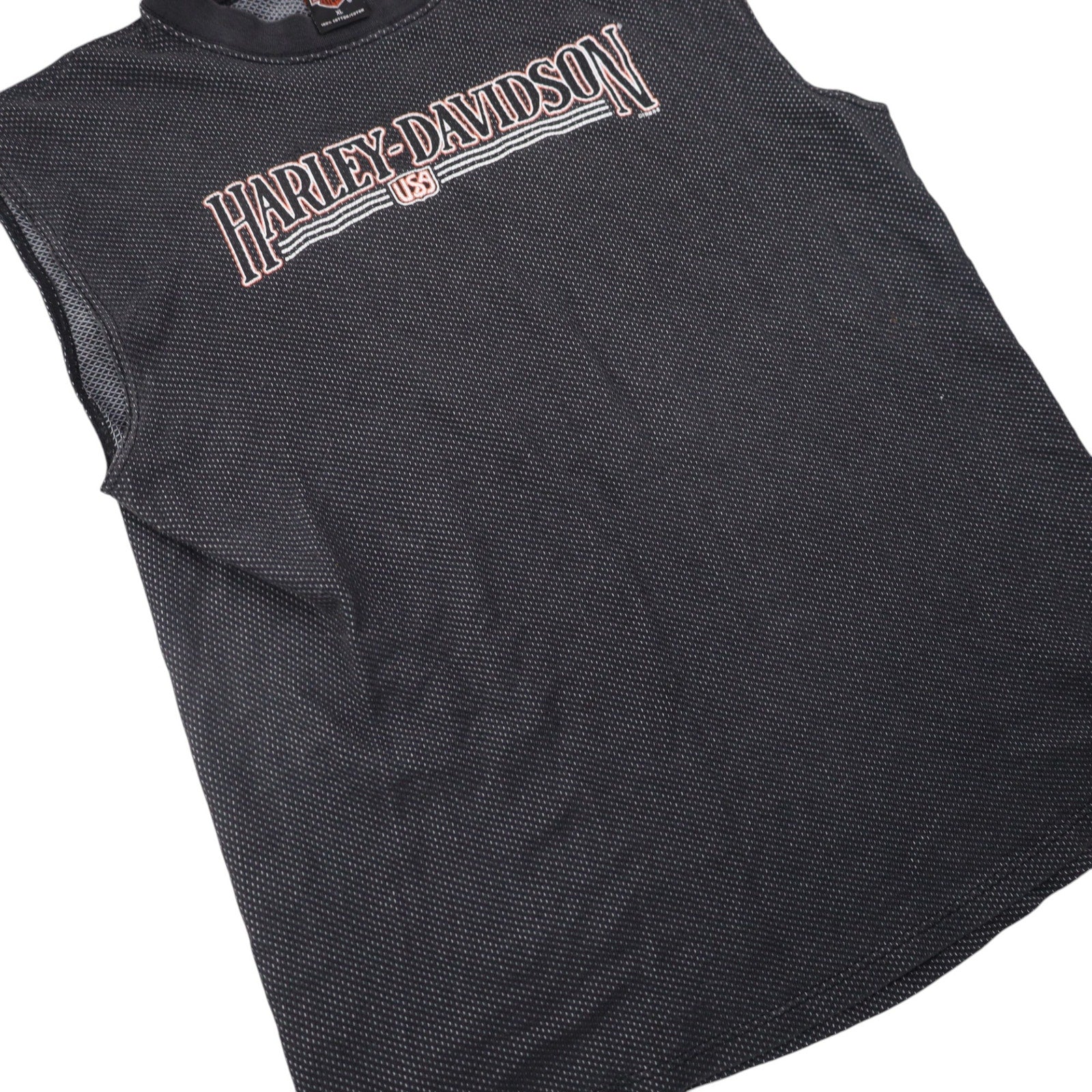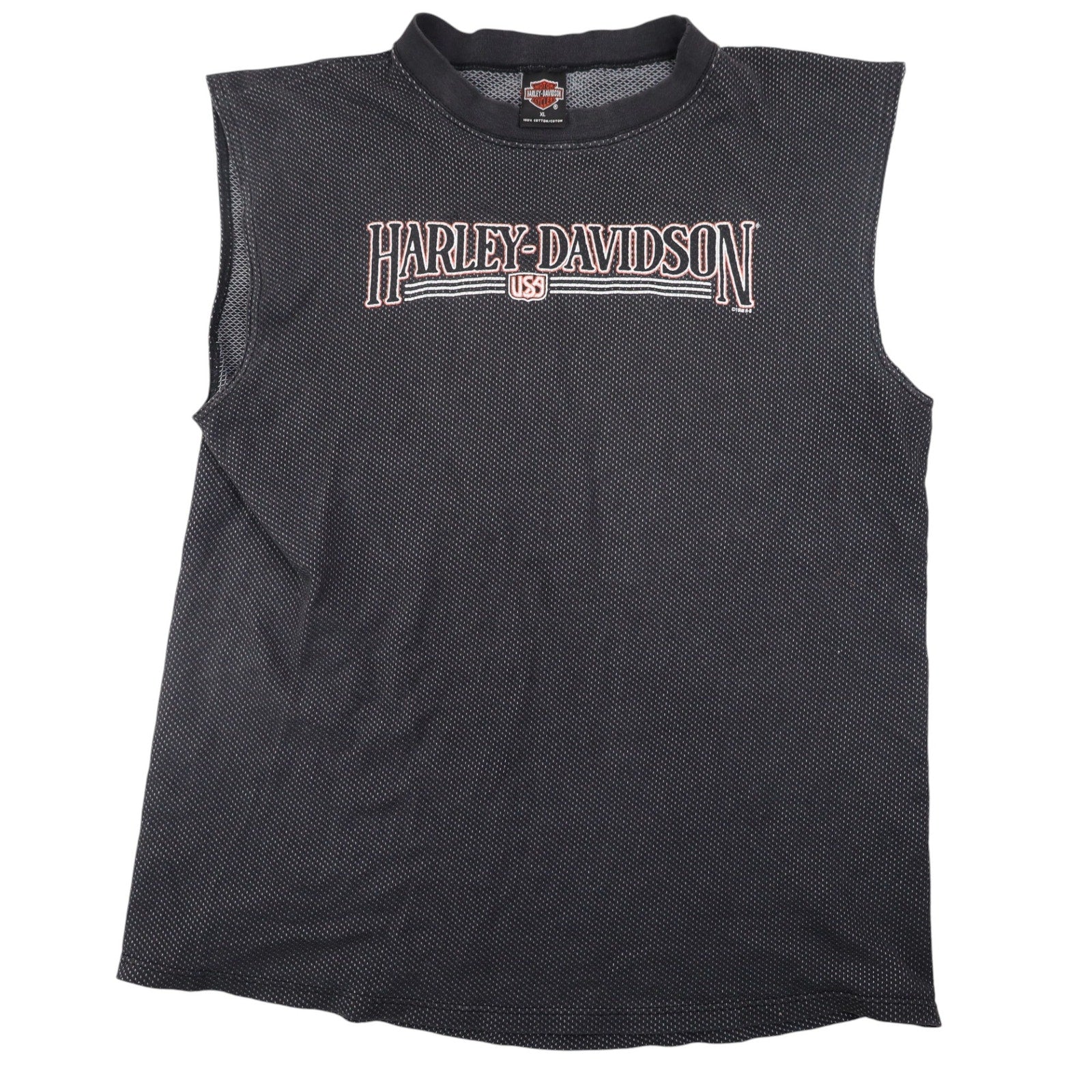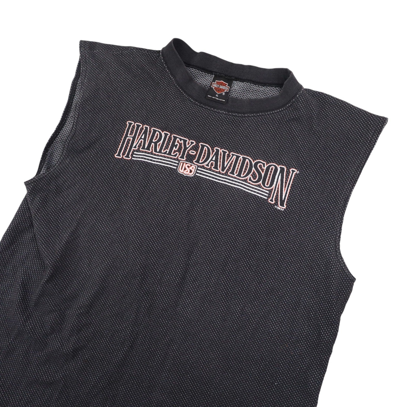 Vintage Harley Davidson Spellout Graphic Muscle Tee. Features front/back graphic/ USA made, has the quality to match. In excellent condition, no notable imperfections.