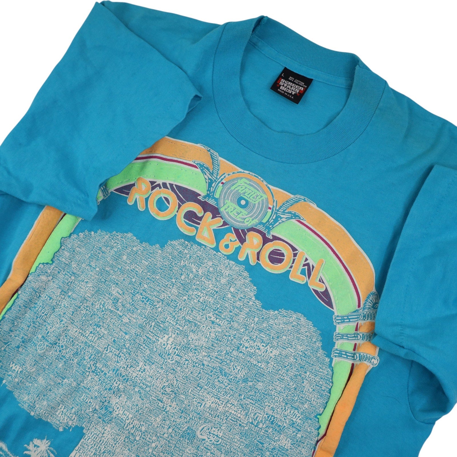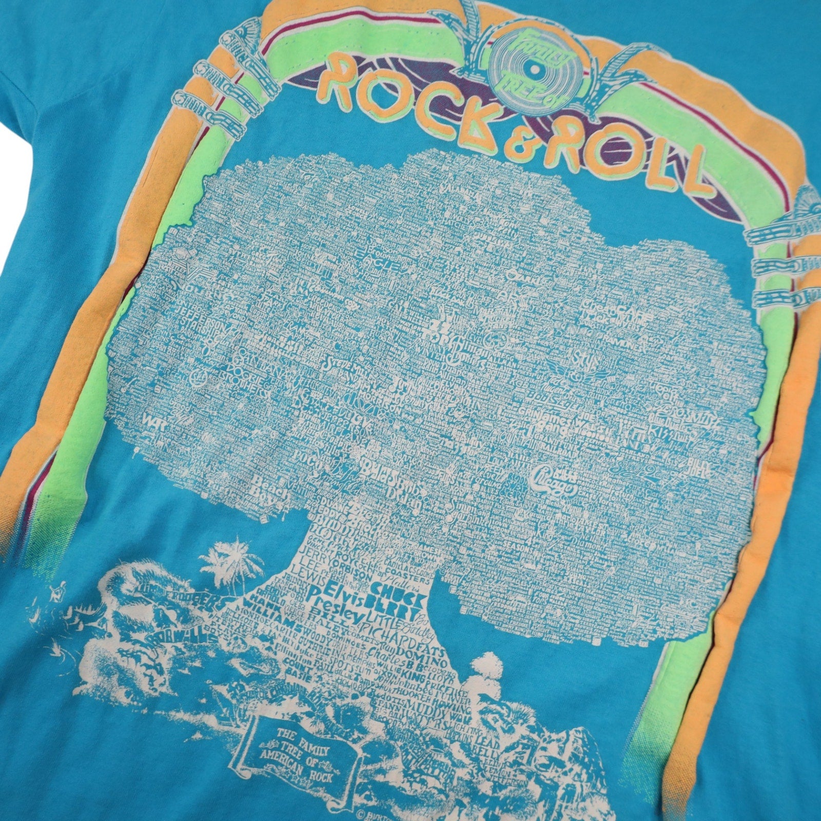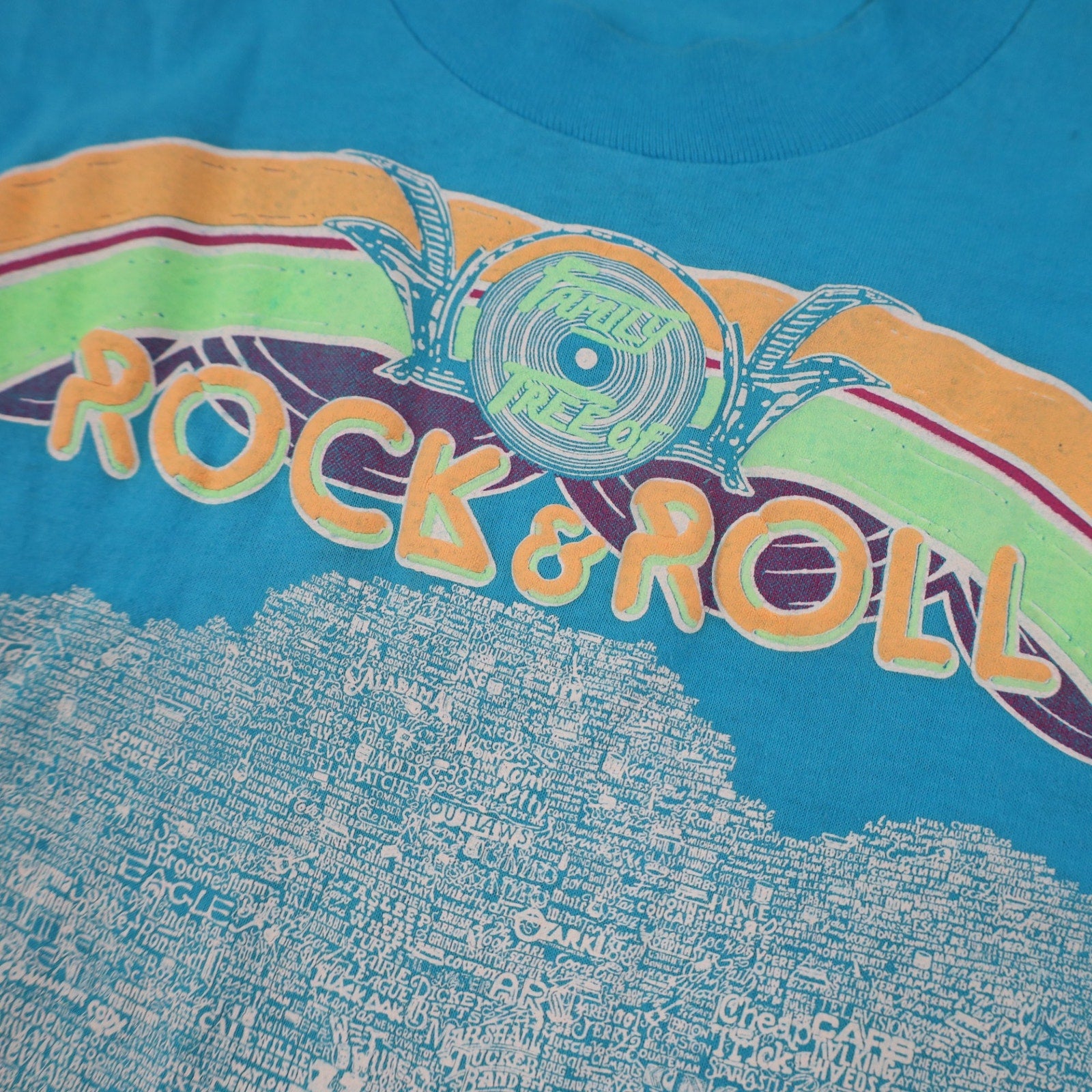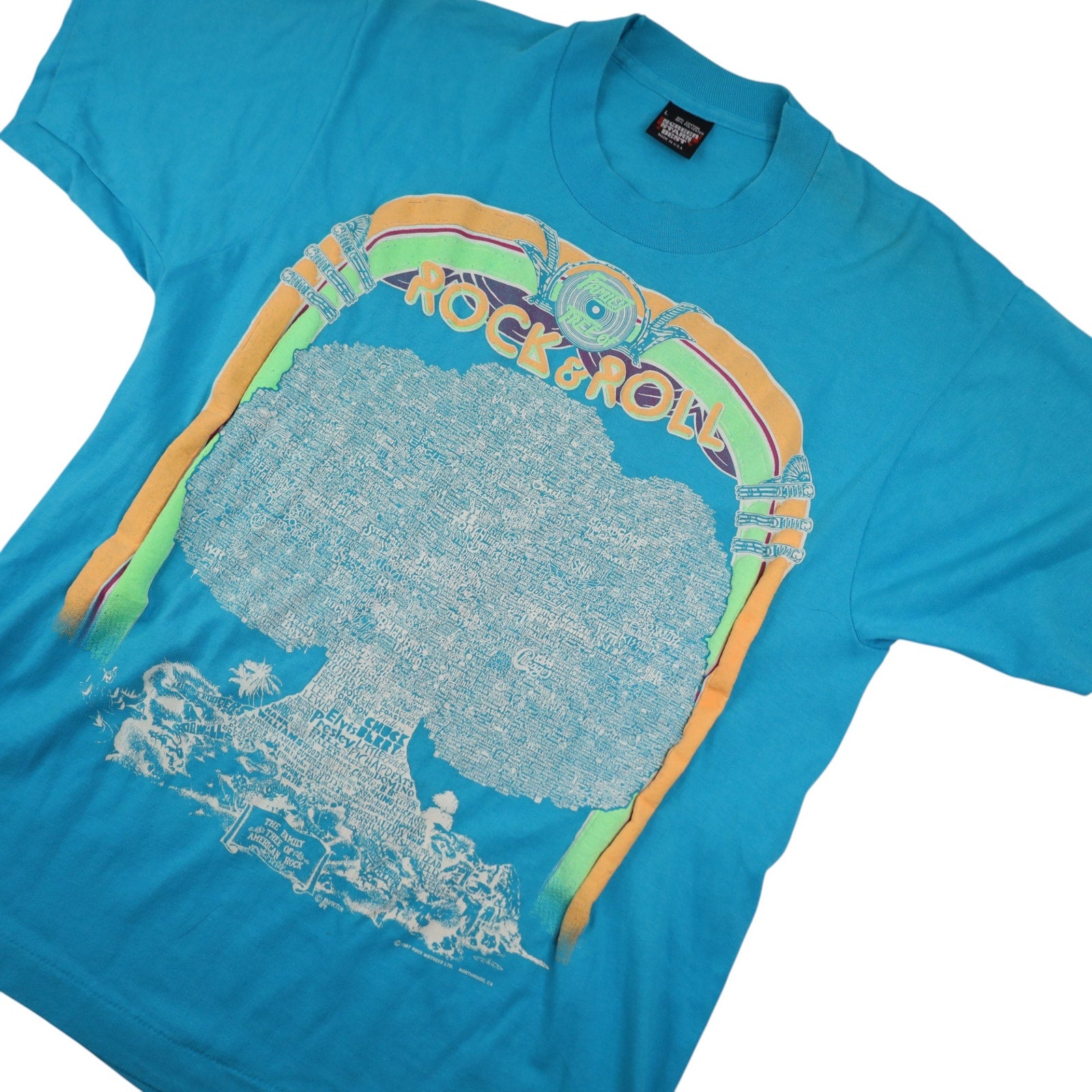 Vintage Rock & Roll Family Tree Graphic T Shirt. Printed on USA made, single stitched, 50/50 poly cotton blend, Screen Stars Best. In beautiful condition, no imperfections to note.