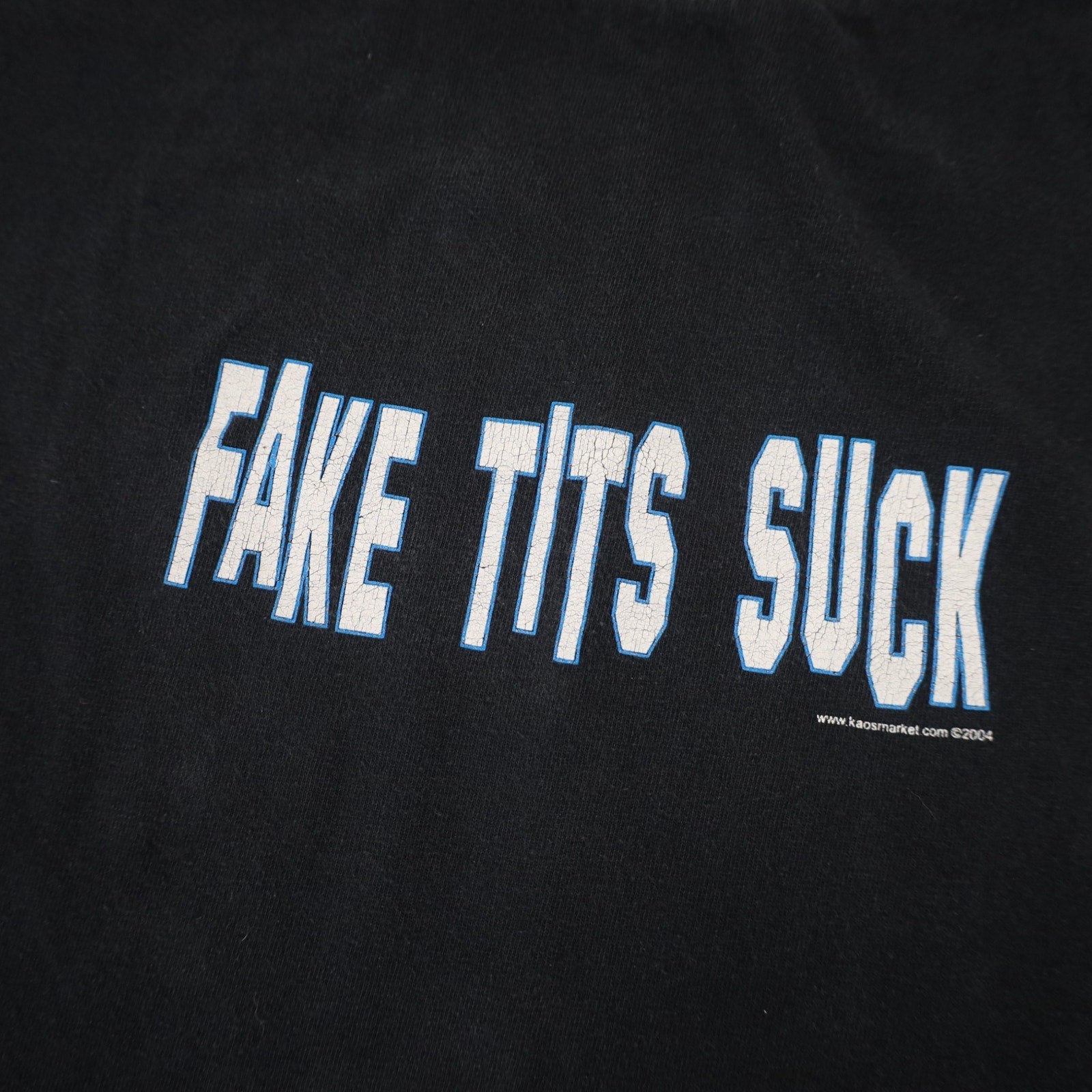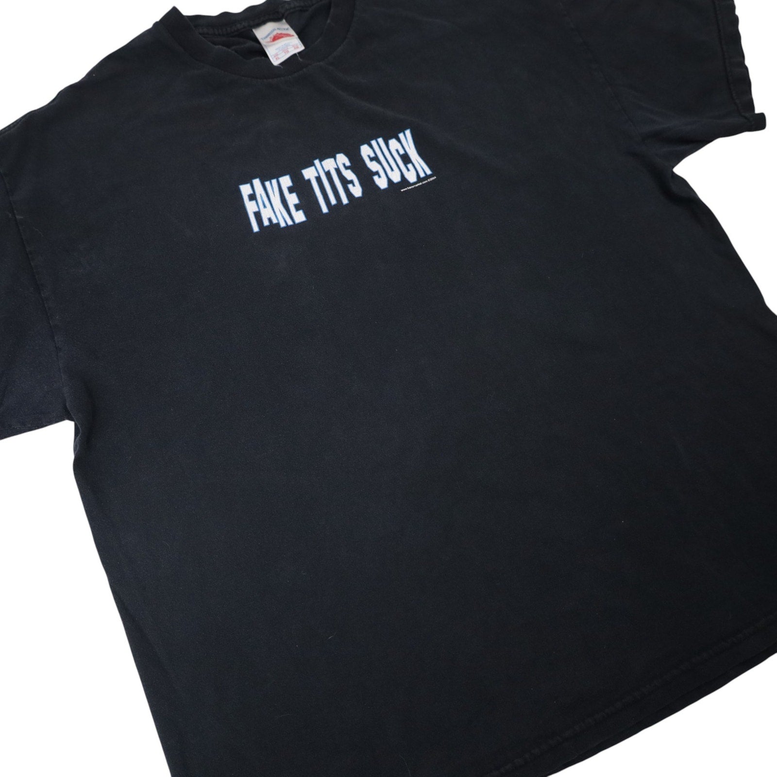 Vintage Y2k "Fake Tits Suck" Slogan T Shirt. In great condition, no notable imperfections.