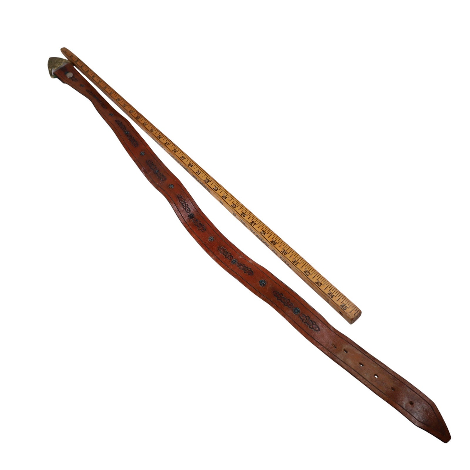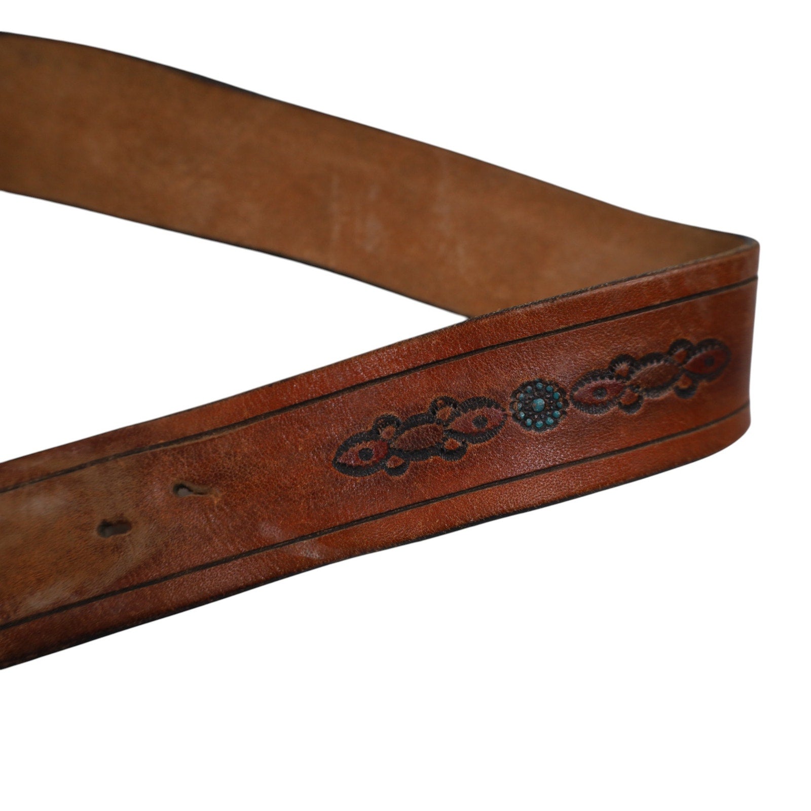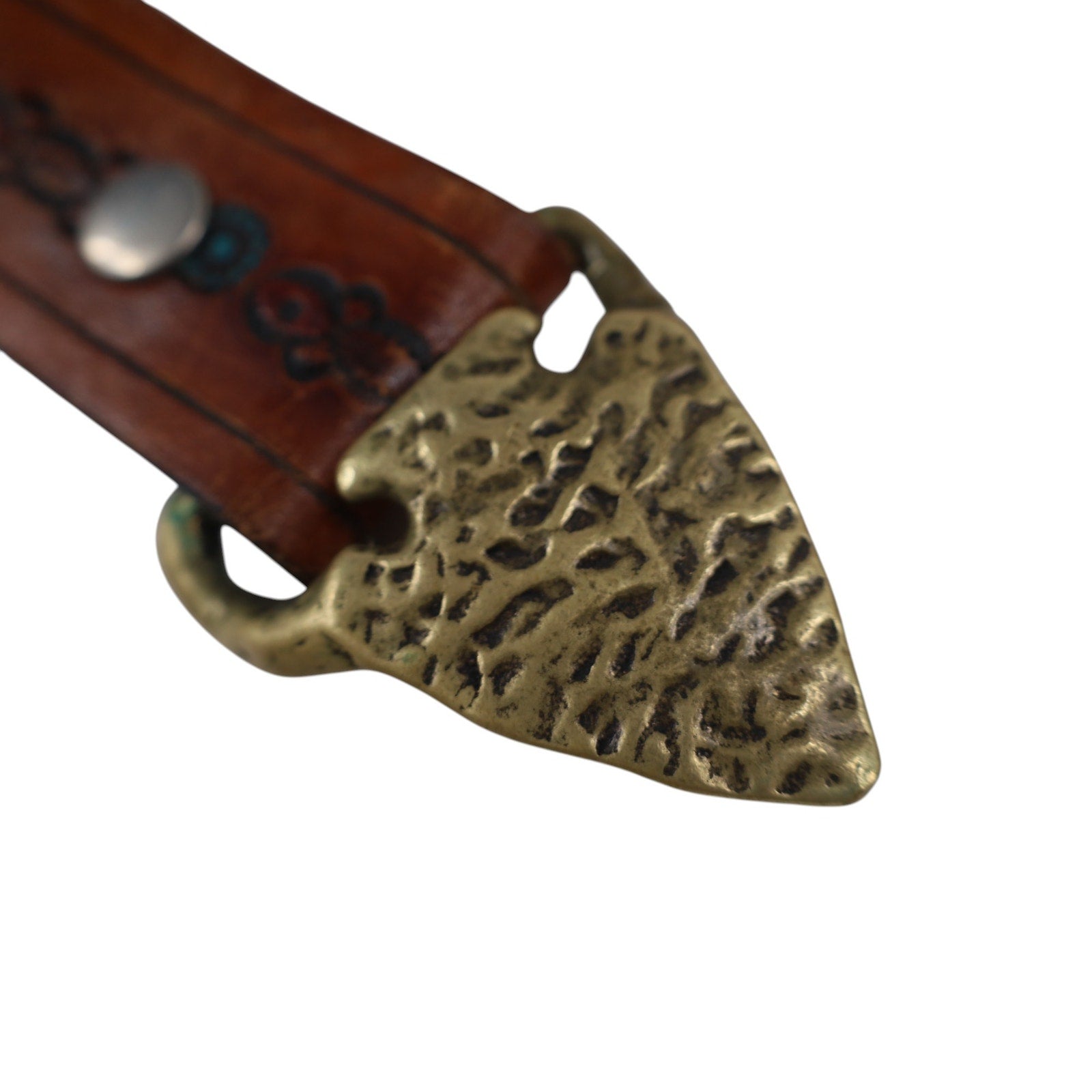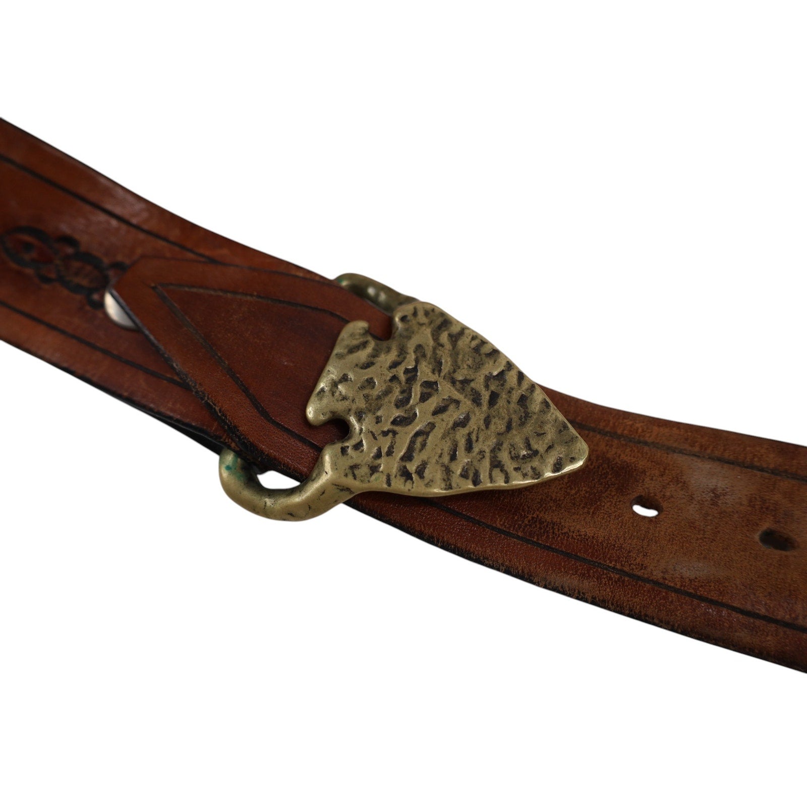 True Vintage 70s Brass Arrow Head Belt Buckle and Embossed Belt - 36"-38"