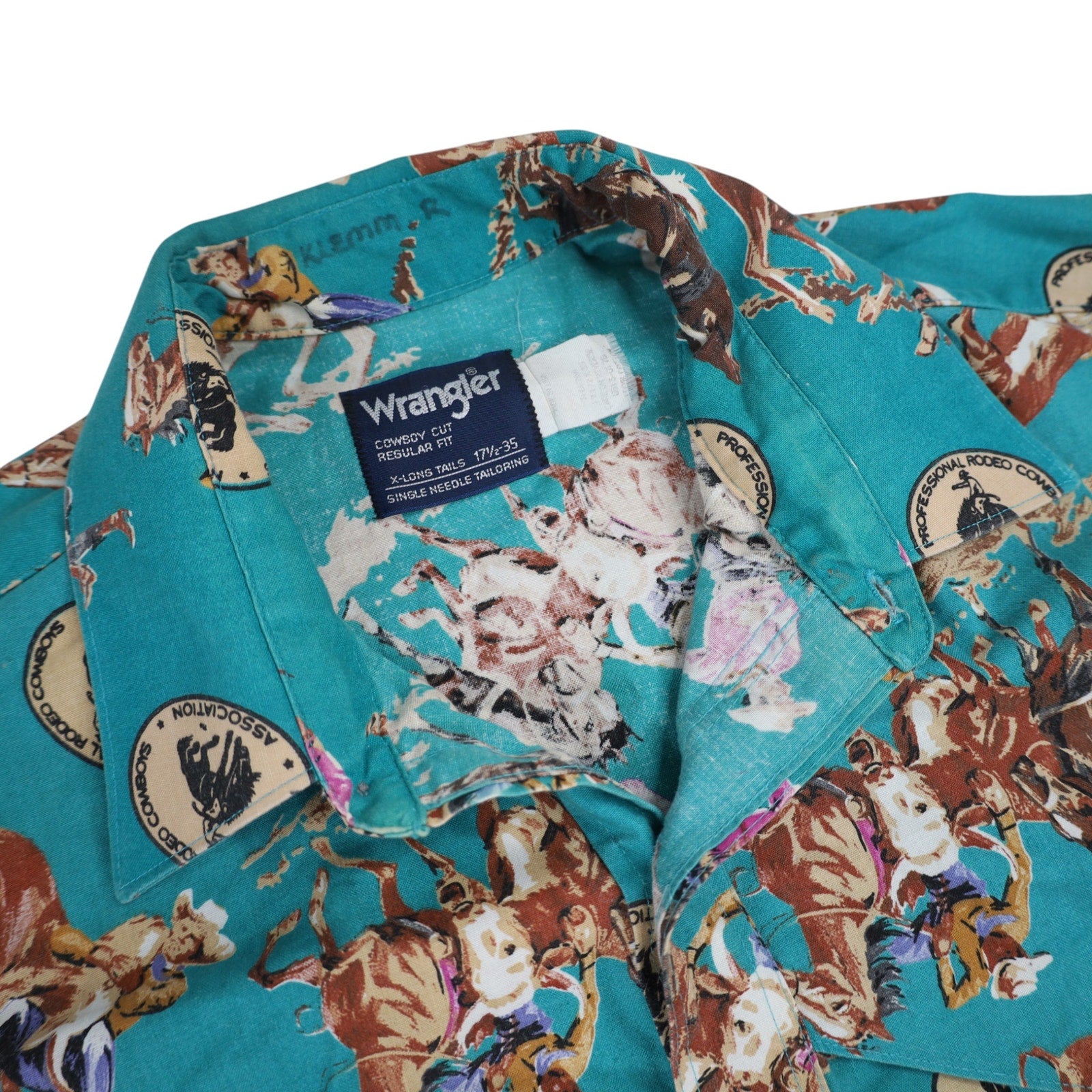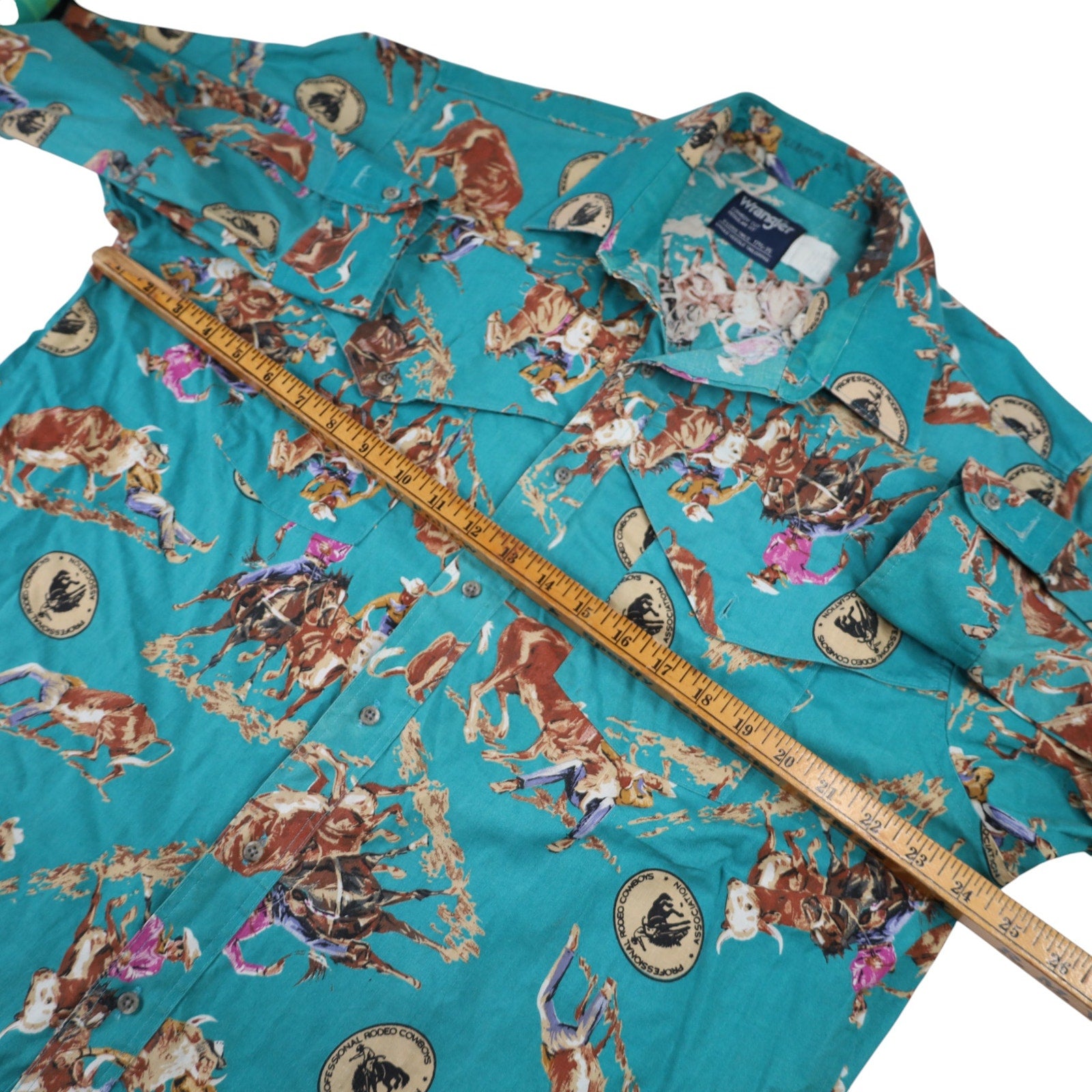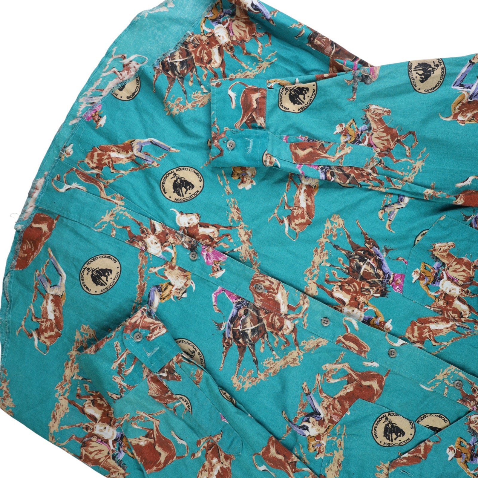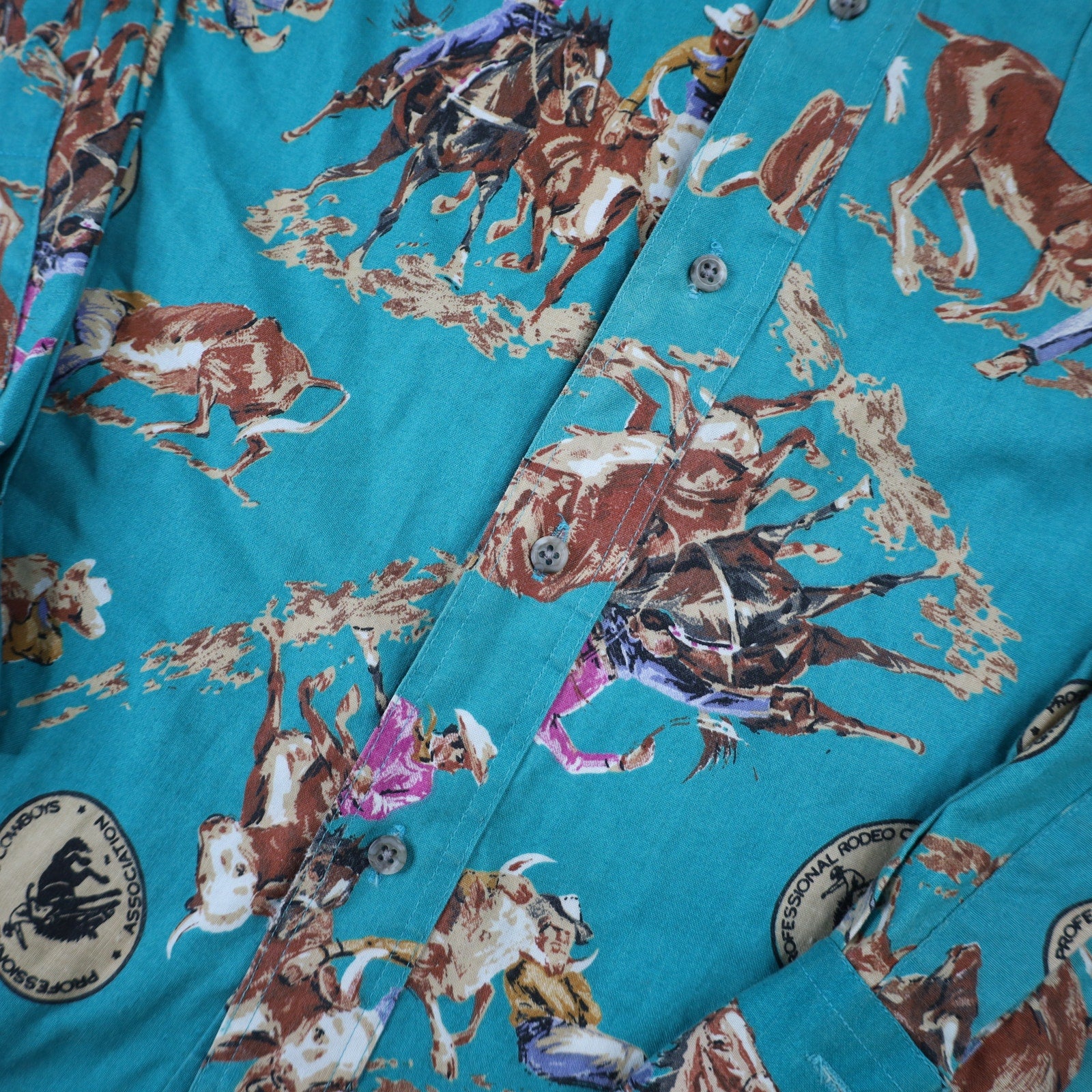 Vintage Wrangler Professional Rodeo Cowboys Assn Allover Print Button Up Shirt. In beautiful condition, no notable imperfections.