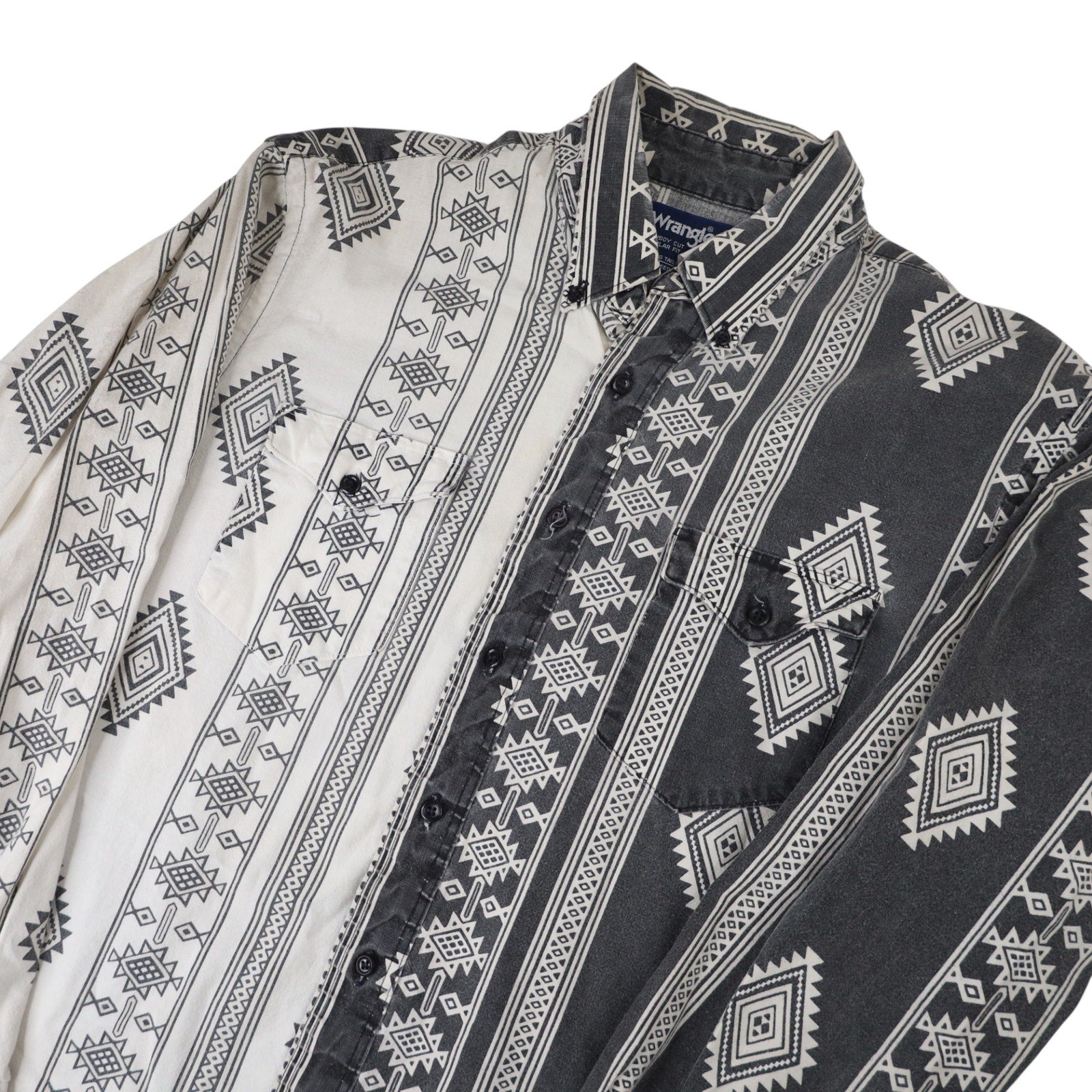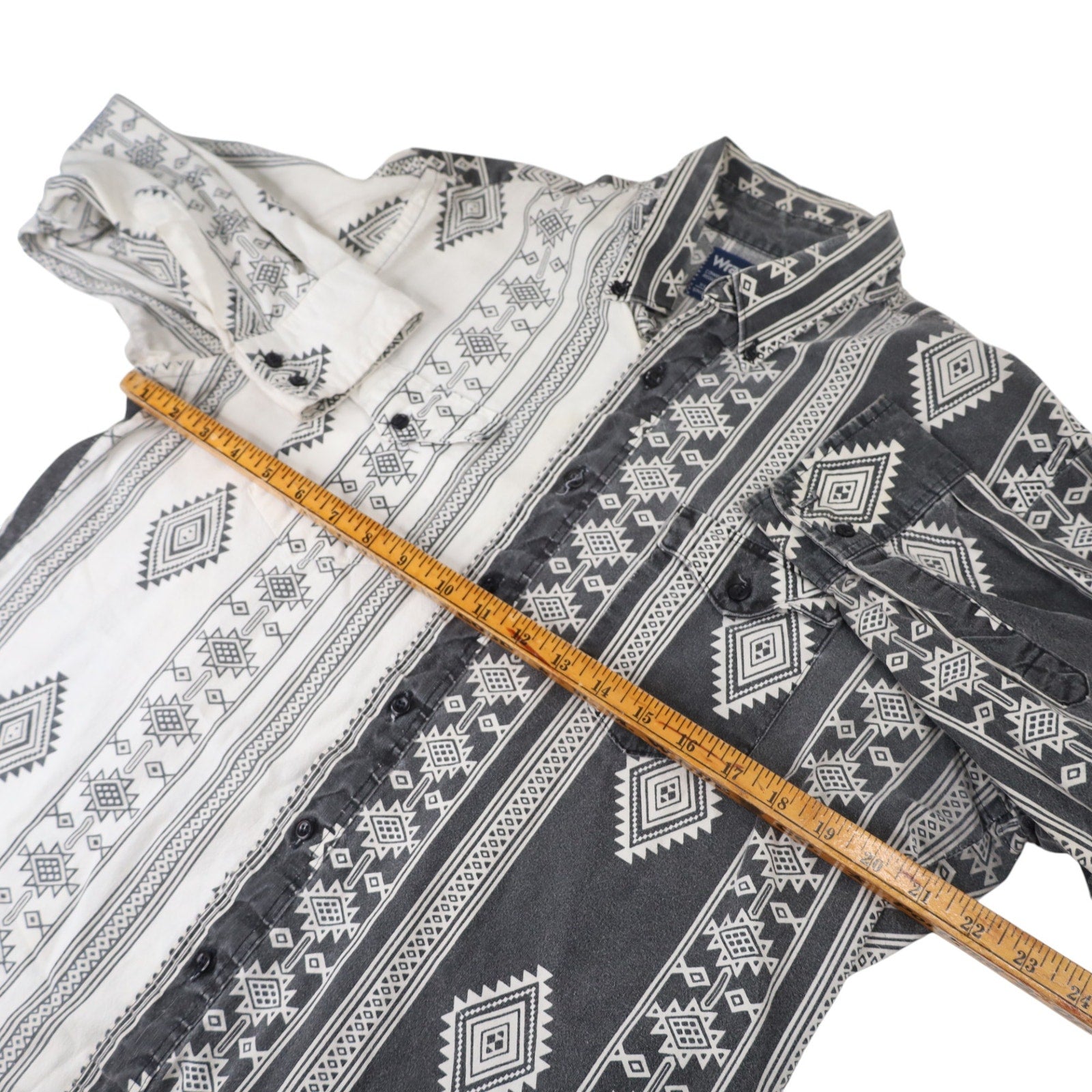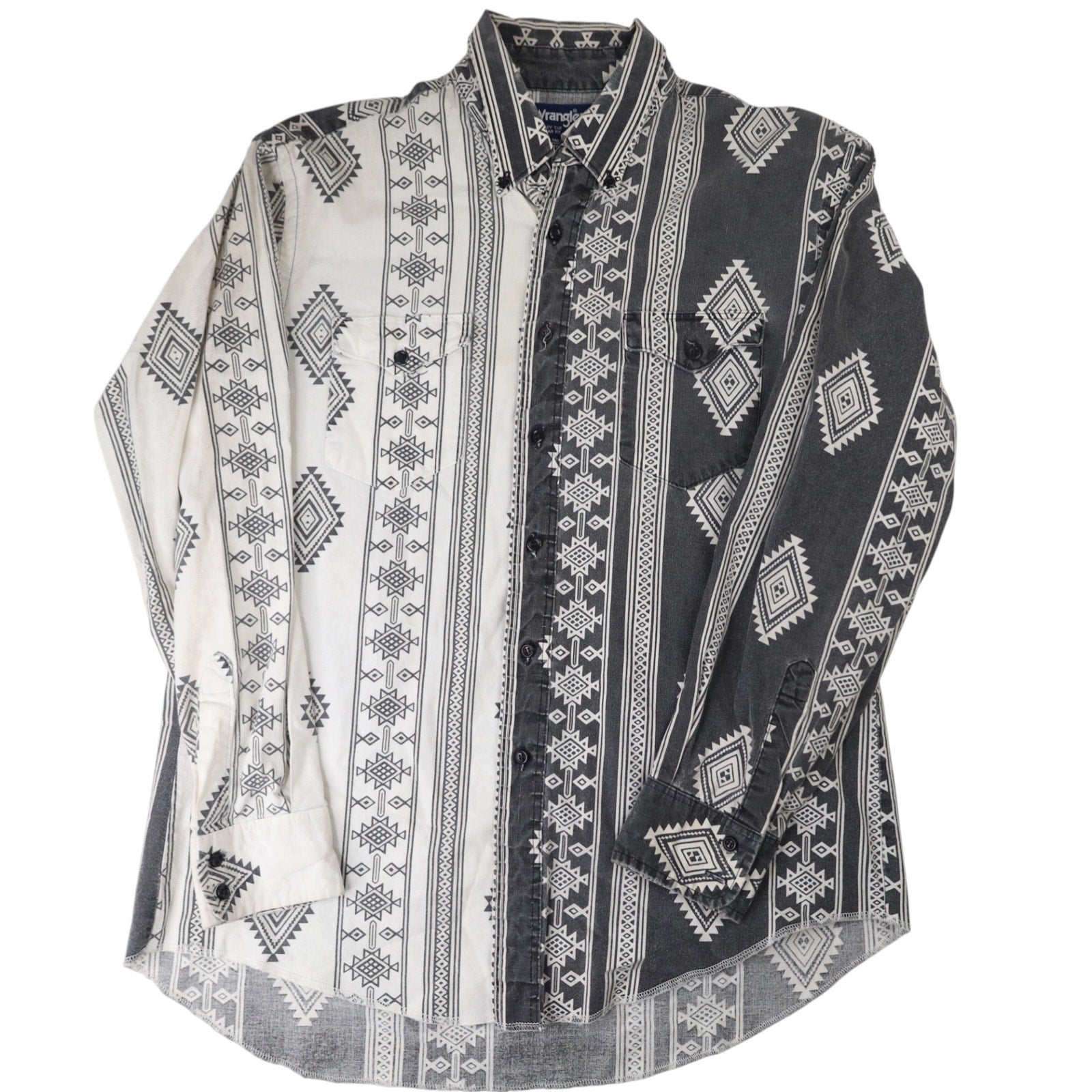 Vintage Wrangler Split Aztec Navajo Design Striped Western Shirt. In excellent condition, no notable imperfections.