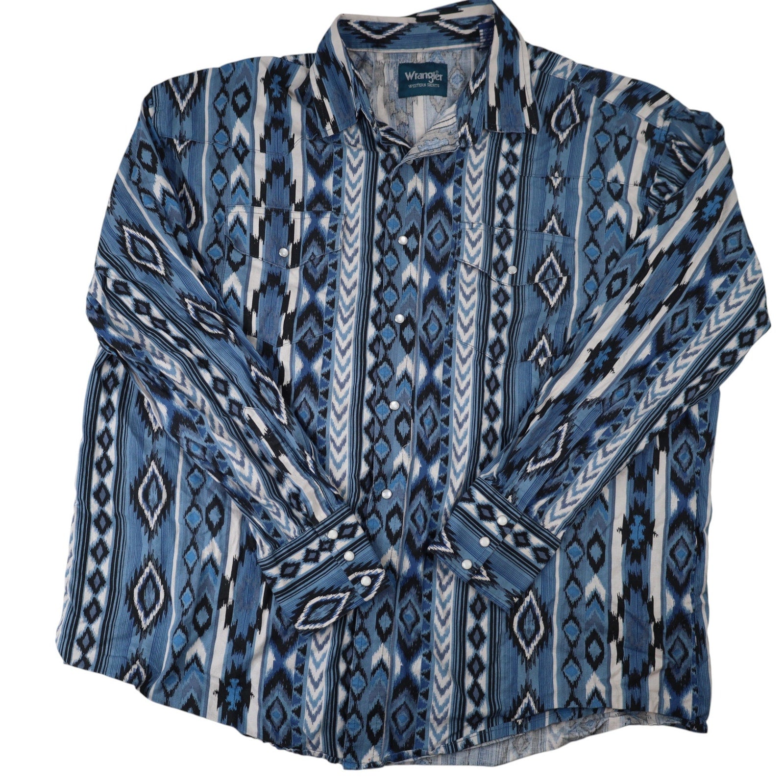Vintage Wrangler Southwestern Print Pearl Snap Western Shirt. In beautiful condition, no notable imperfections.