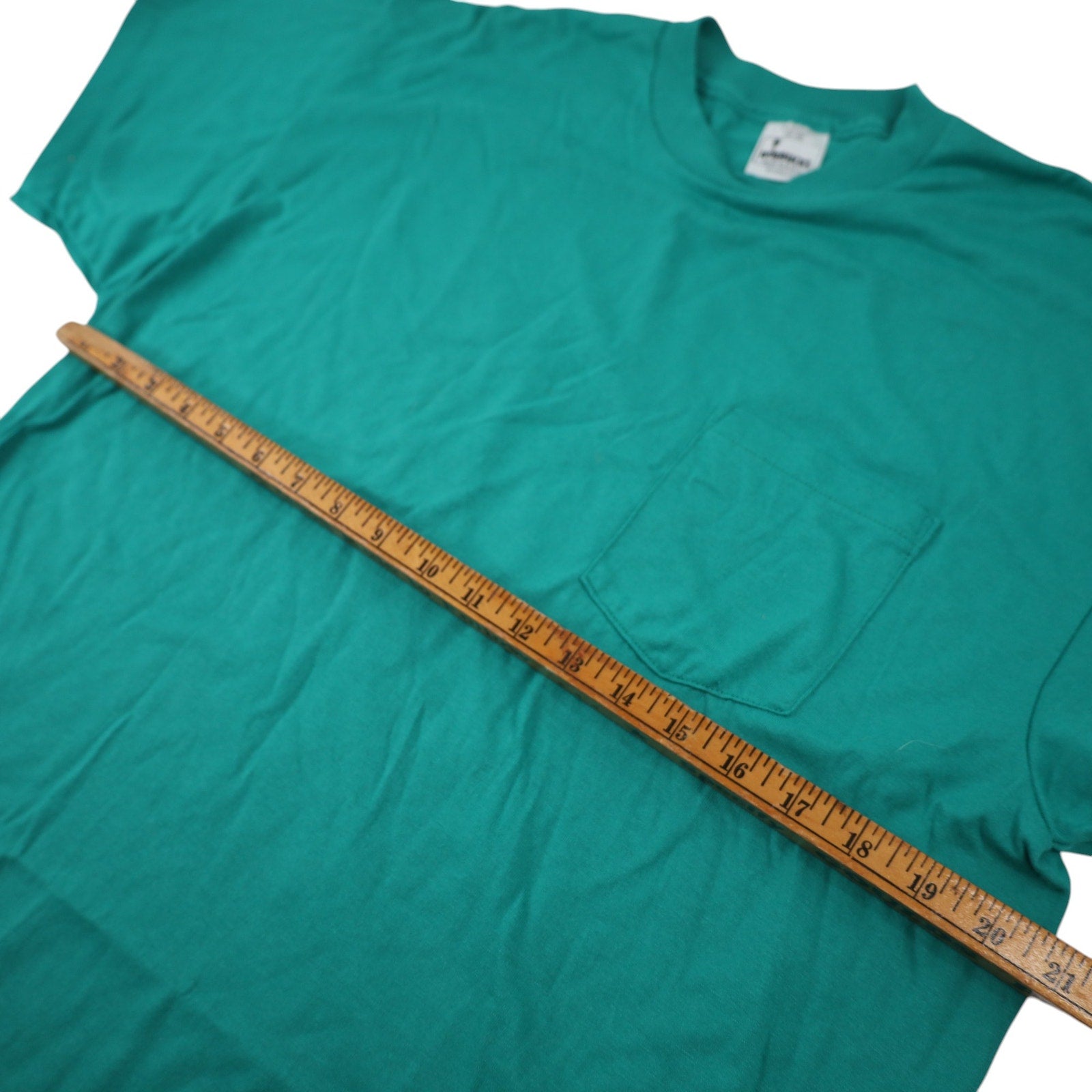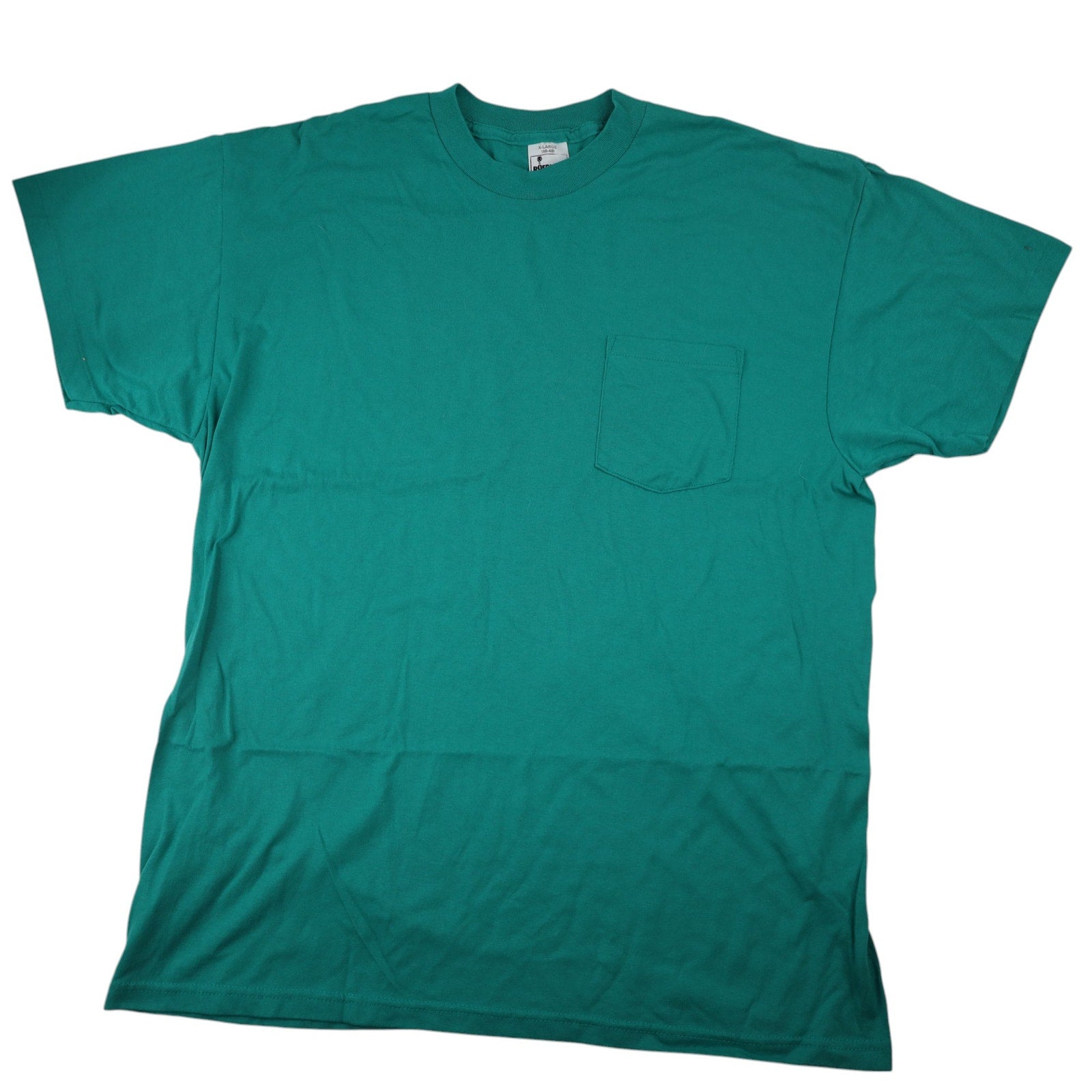 True Vintage Roebucks Single Stitched Blank Pocket T Shirt. Awesome teal color. USA made, has the quality to match. In excellent condition, no notable imperfections.