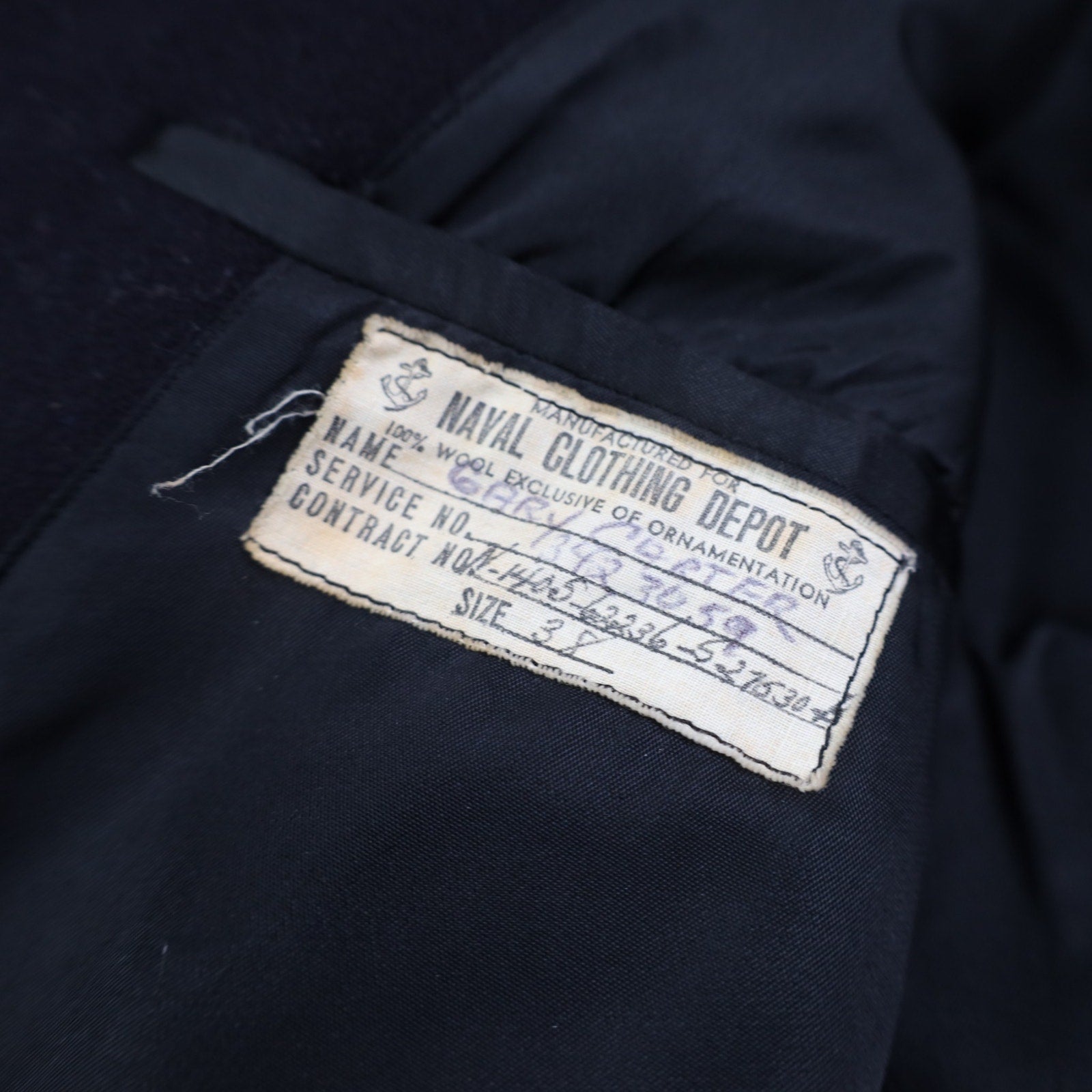 True Vintage WWII  Naval Clothing Depot Heavy Wool Double Breasted Pea Coat - S