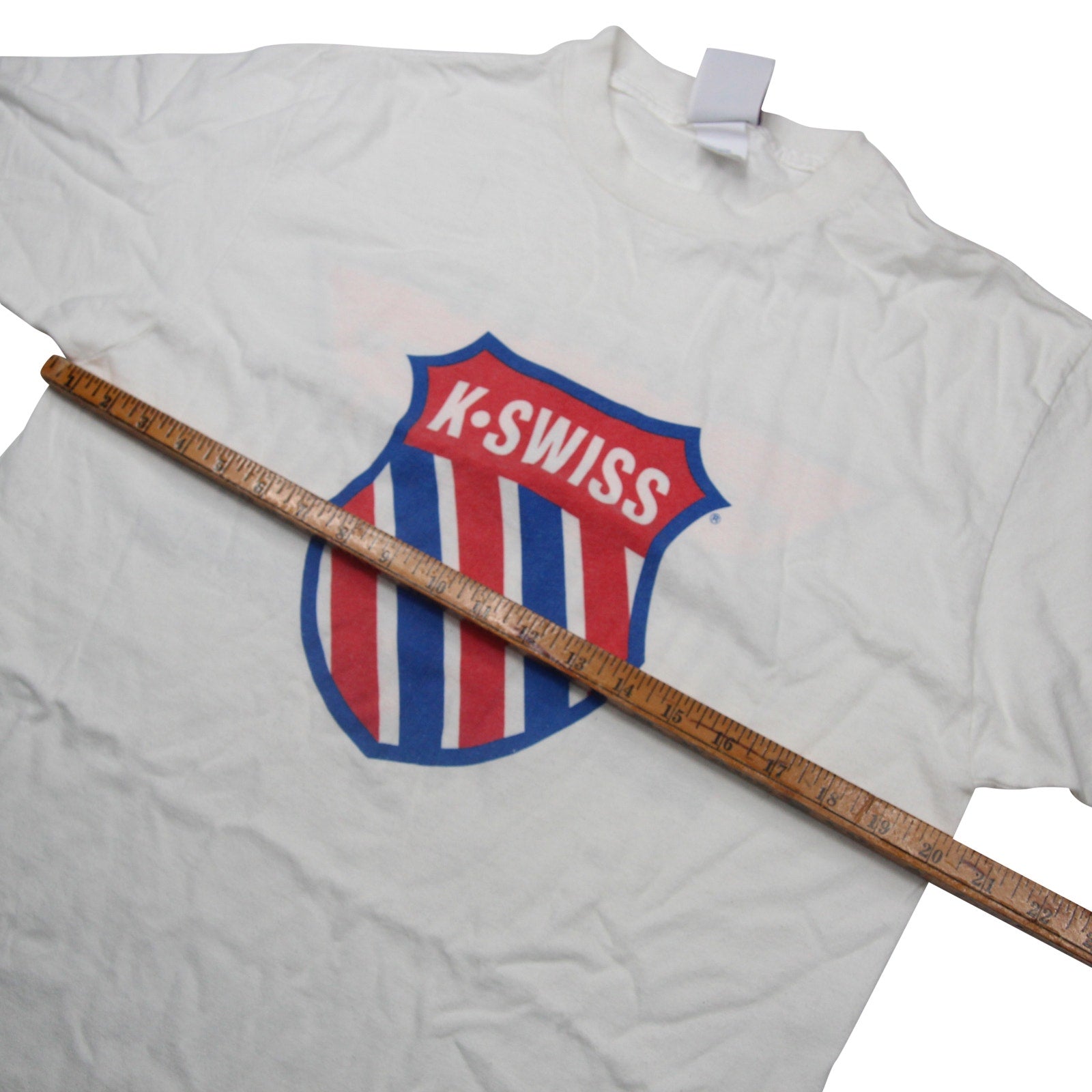 Vintage 1990 K-Swiss Volleyball camp graphic T shirt. Single stitched and USA made. Clean overall, has tons of life left.