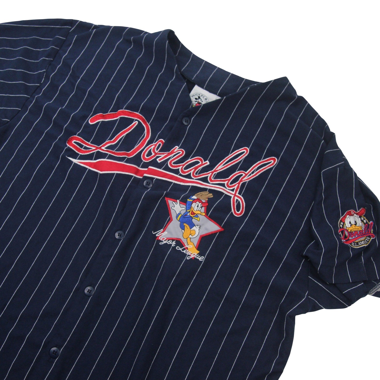 Vintage Disney Donald Duck baseball shirt. Features all sewn construction and pin striping. Very clean, no notable imperfections.