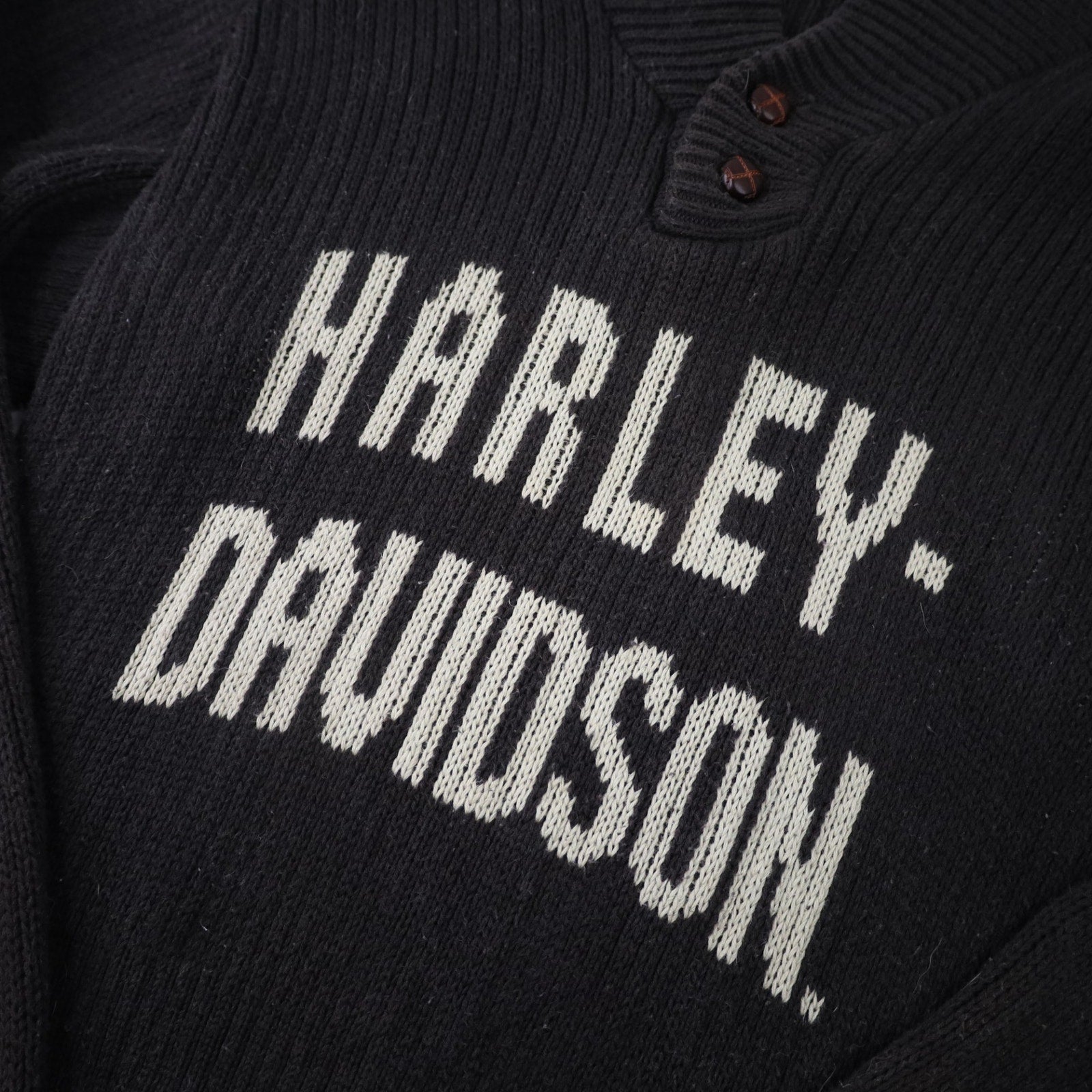 Vintage Harley Davidson Knit Spellout Cowl Sweater. USA made, has the quality to match. In excellent condition, no imperfections to note.